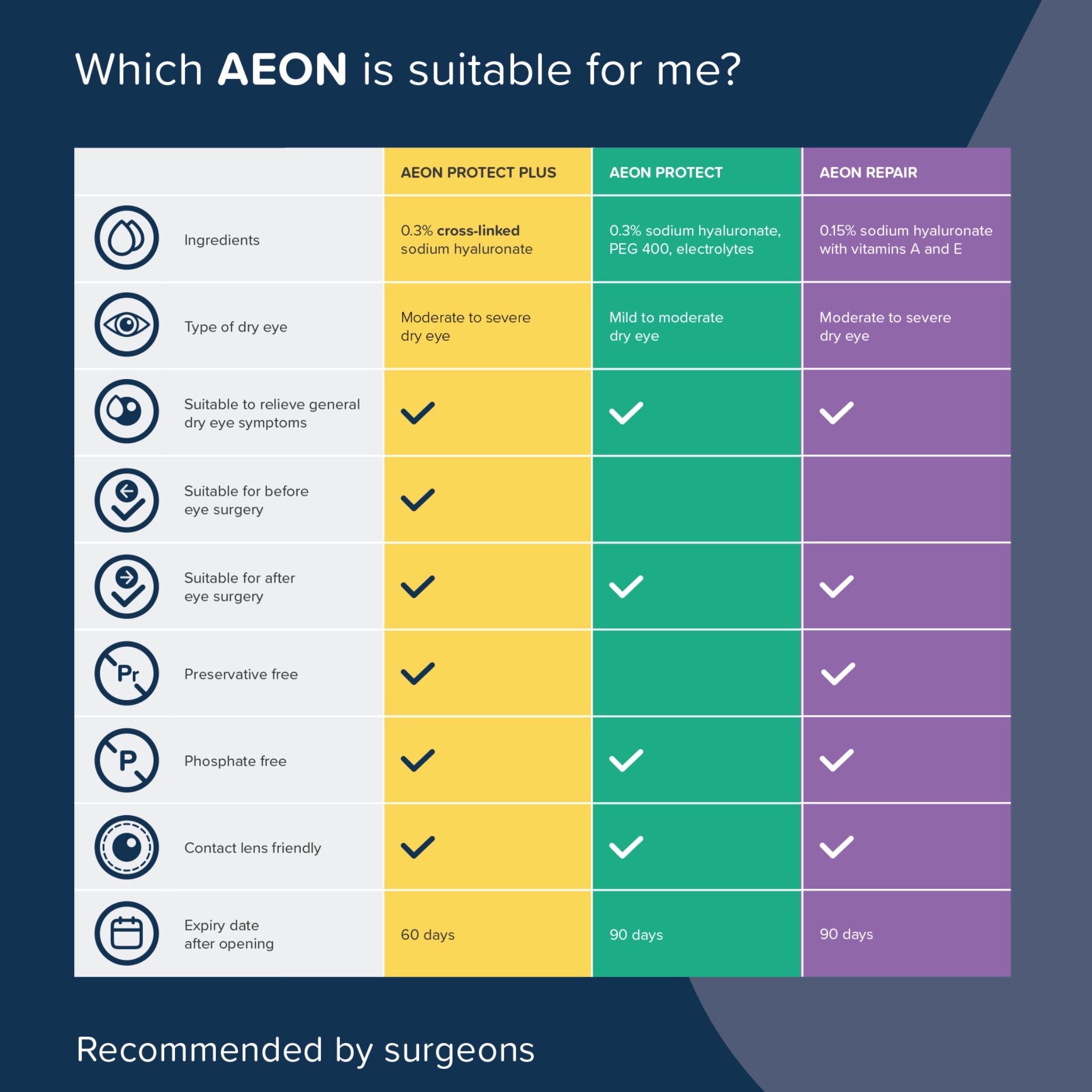 Suffering from sore, gritty or redeyes…AEON eye drops support eye health and are designed to treat all types of dry eye